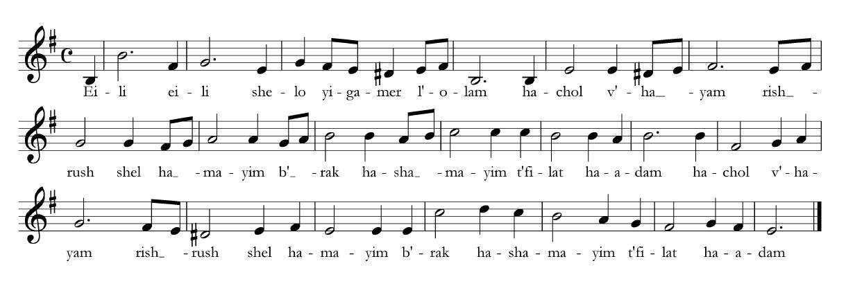 De ‘Kanarie’, zoals de liefdevolle werktitel luidt, is drie-talig: Hebreeuws (+Aramees), Nederlands, Engels. En zal ook een fonetische tekst bevatten.